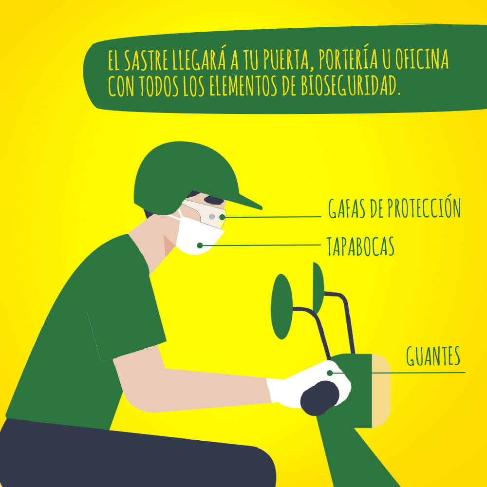 6. Uso permanente de gel antibaterial al momento de realizar sus labores en tu domicilio o en el taller del sastre.